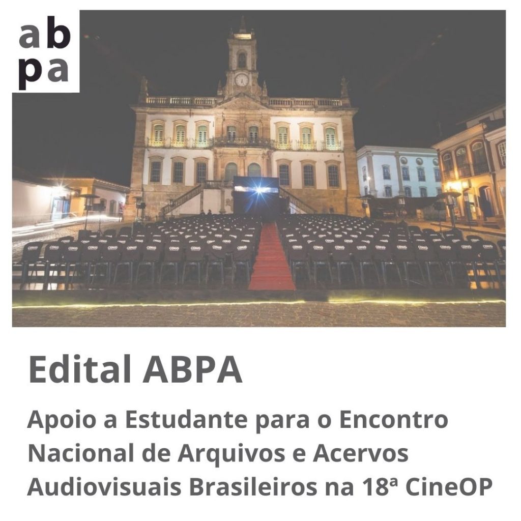Em 2023, a Associação Brasileira de Preservação Audiovisual (ABPA), com o intuito de fomentar a participação de estudantes durante o Encontro Nacional de Arquivos e Acervos Audiovisuais Brasileiros, abre o edital de apoio para participação de um estudante de graduação na 18ª CineOP – Mostra de Cinema de Ouro Preto. A Mostra e a ABPA caminham juntas desde 2008, quando a associação foi fundada durante a 3ª edição do evento.